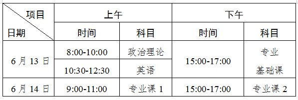 (一)本科插班生考试时间安排(北京时间)