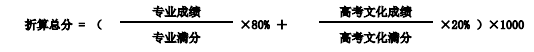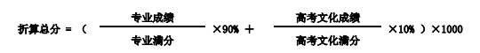 4.录音艺术专业以折算总分(专业成绩和高考文化成绩各占90%和10%)由高到 低排名择优录取。折算公式如下: