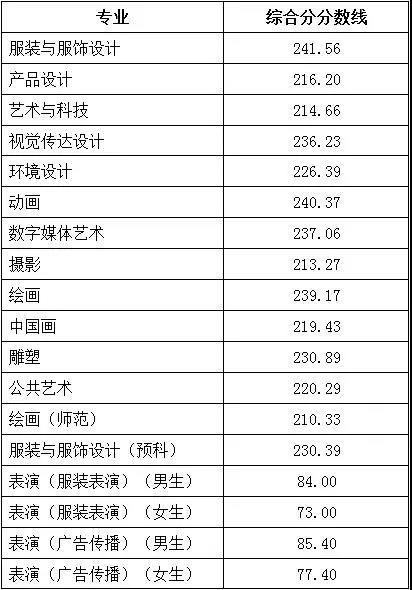 2.服装与服饰设计专业、产品设计专业、艺术与科技专业、视觉传达设计专业、环境设计专业、动画专业、数字媒体艺术专业、摄影专业、绘画专业、中国画专业、雕塑专业、公共艺术专业为生源省份艺术本科录取控制分数线,并且要求外语科目成绩不得低于60分(150分制)。