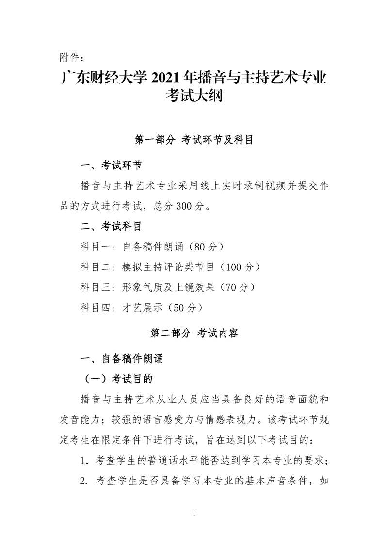 广东财经大学2021年播音与主持艺术专业考试大纲广东财经大学2021年播音与主持艺术专业考试大纲