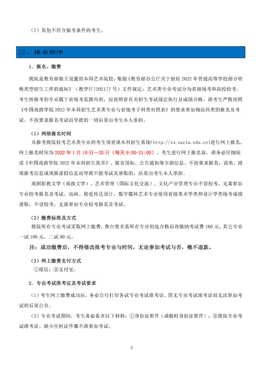 中国戏曲学院2022年本科招生简章