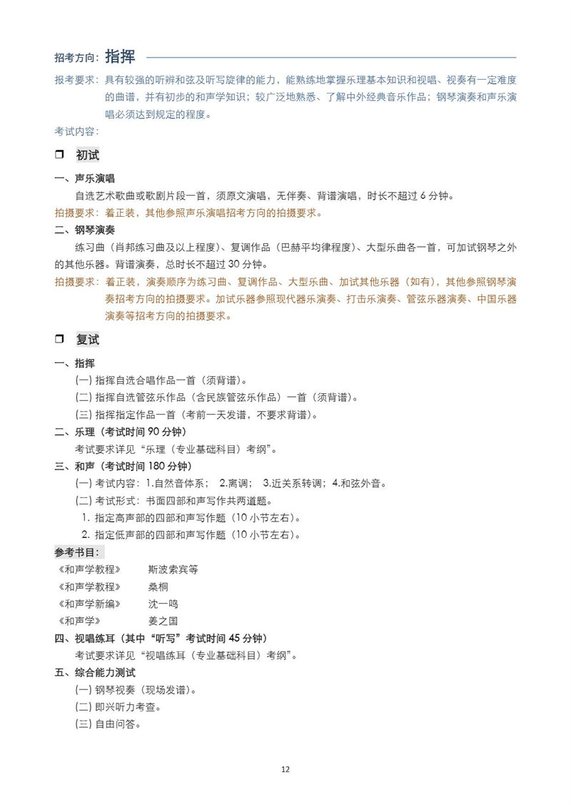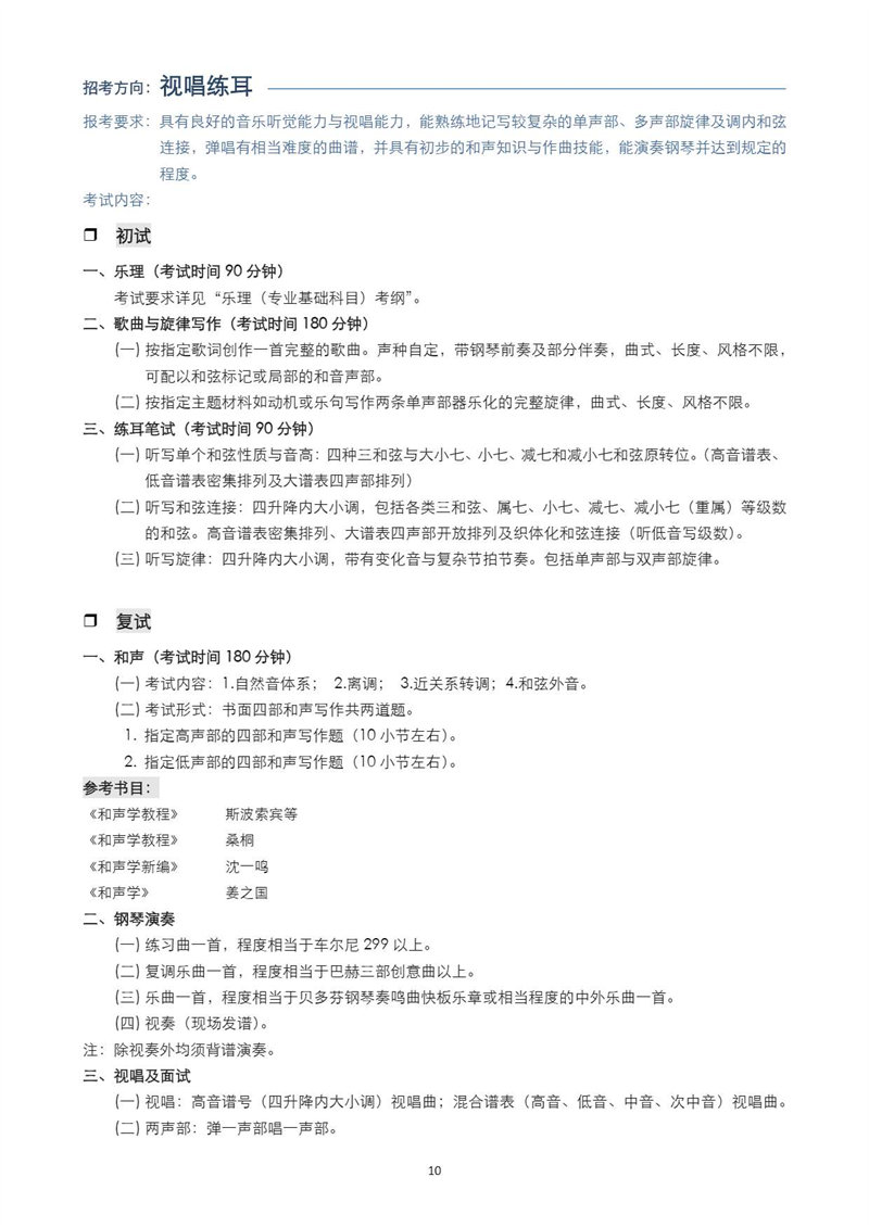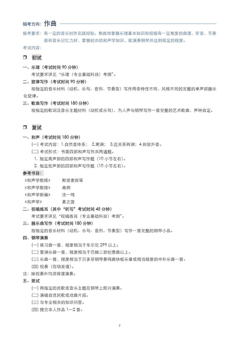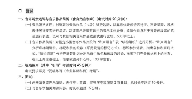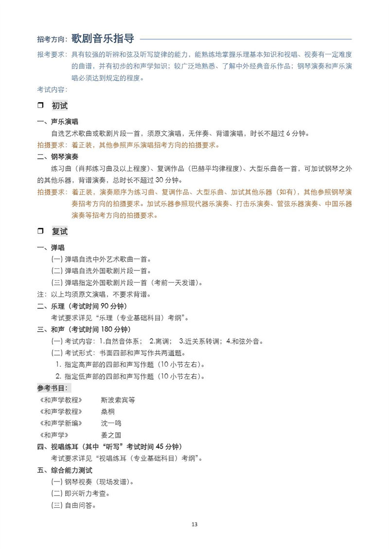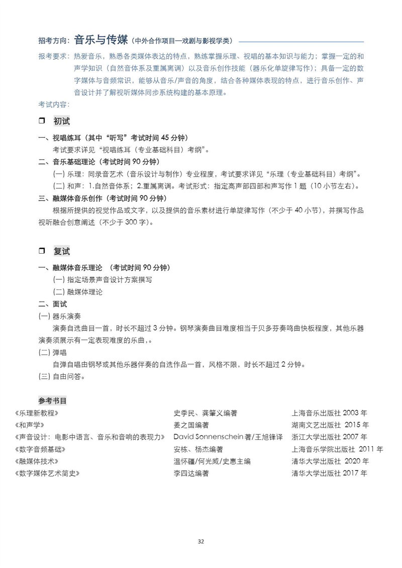2023年上海音乐学院本科艺术类招生专业目录考试大纲