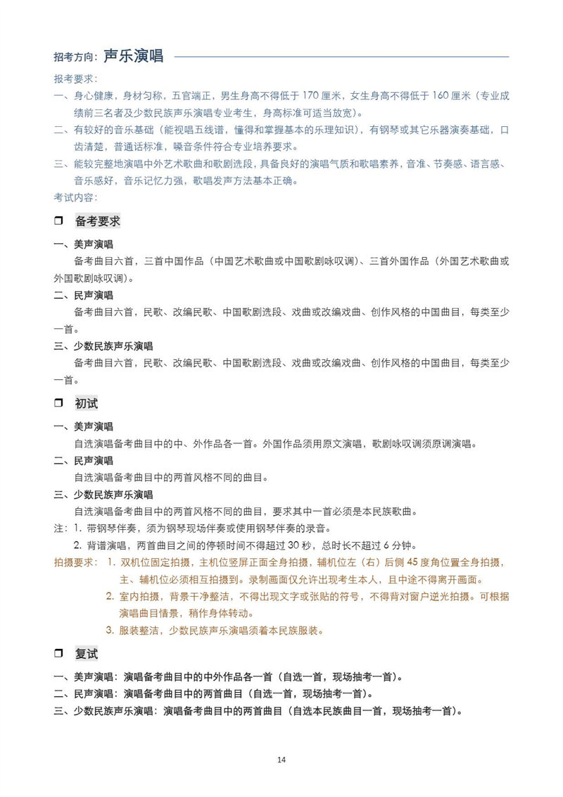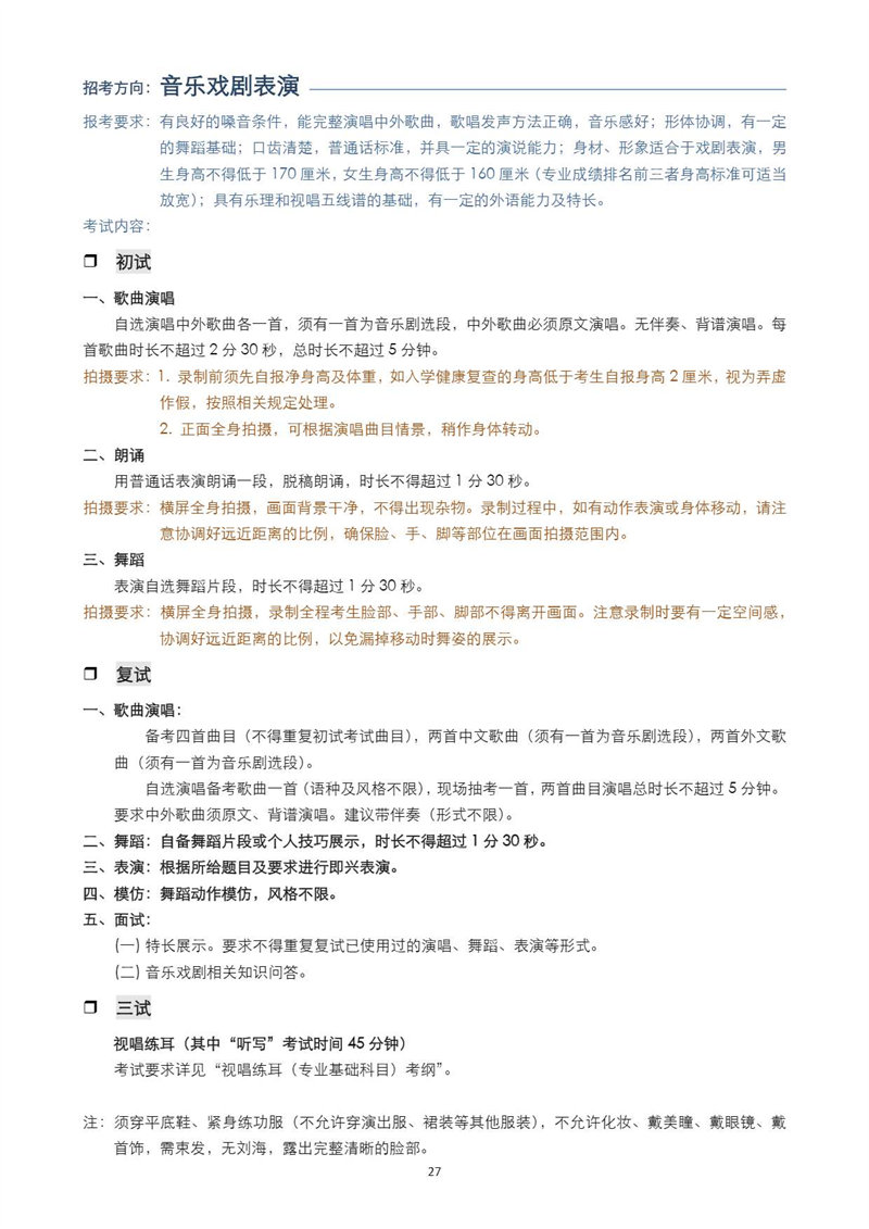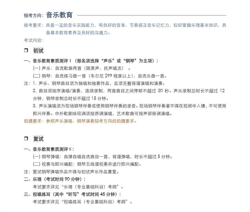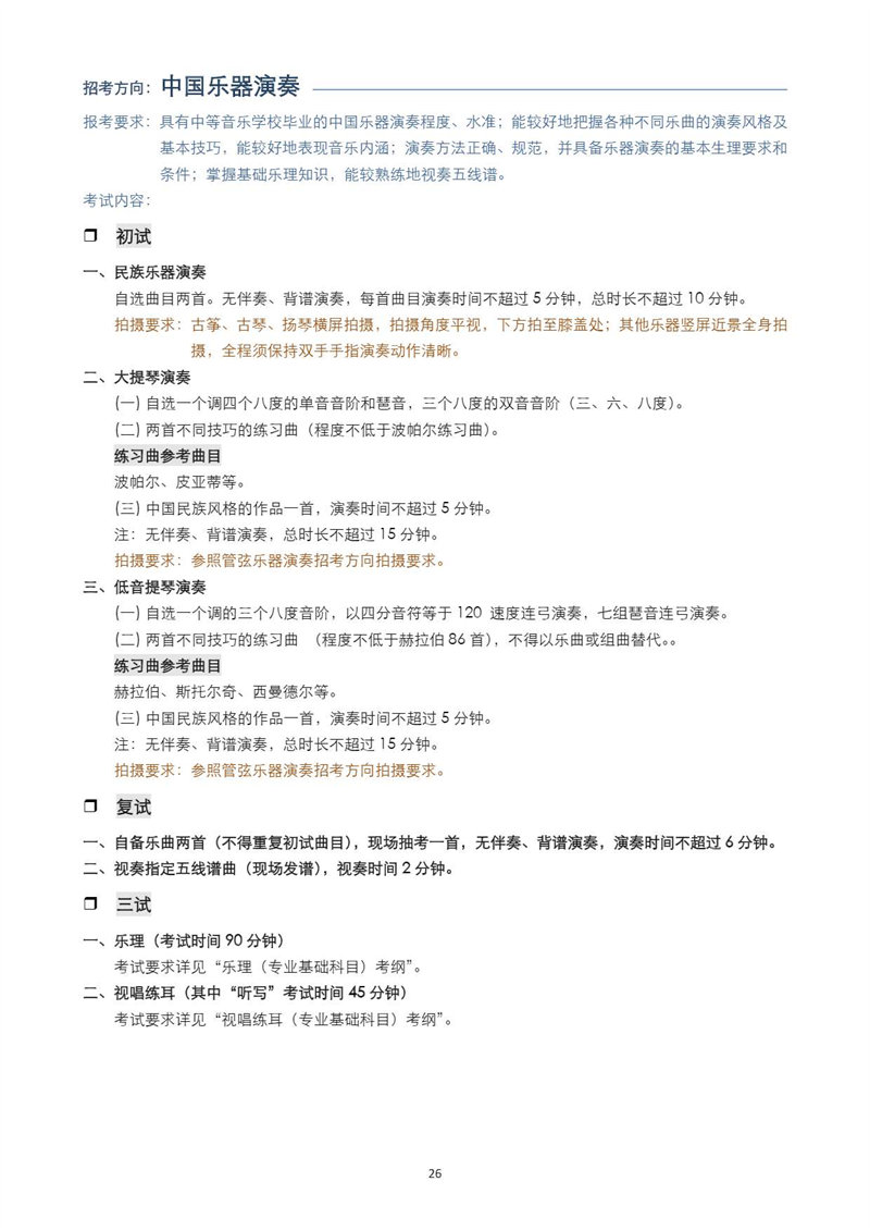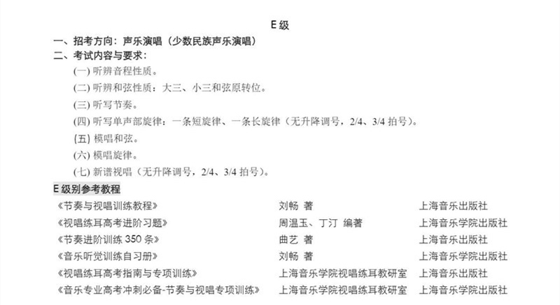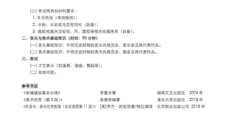 2023年上海音乐学院本科艺术类招生专业目录考试大纲