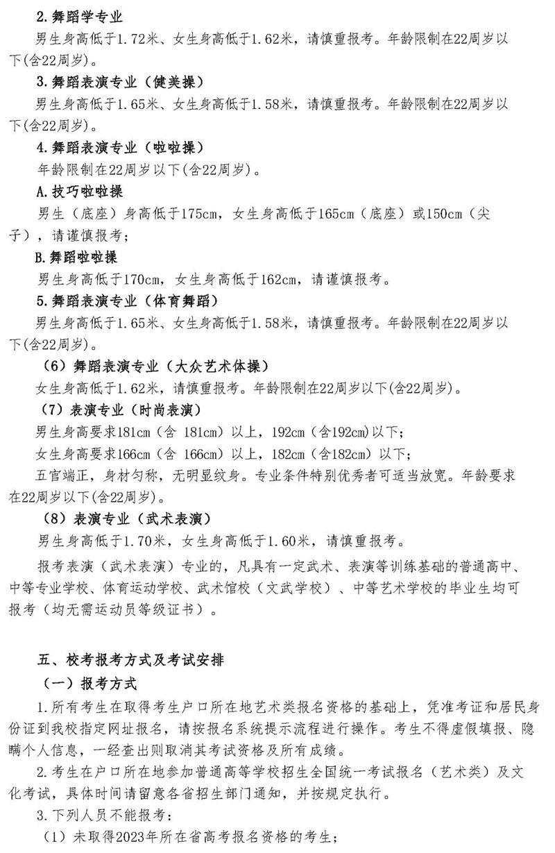 该专业按普通高考艺术类招生,选考科目不限,学制4年,本科学历,毕业生符合条件者授予艺术学学士学位。该专业培养德、智、体、美、劳全面发展的舞蹈人才,掌握舞蹈学科基本理论、基础知识与基本技能,并推崇“开放式教学理念”引导下的当代舞蹈教育科研体系,提倡“以教师为主导,学生为主体”的个性化引导式教学方式,注重专业文化教育与专业技巧培养相结合,培养以中国舞为特色的舞蹈教学、表演、编导、管理“四位一体”的复合型应用人才。