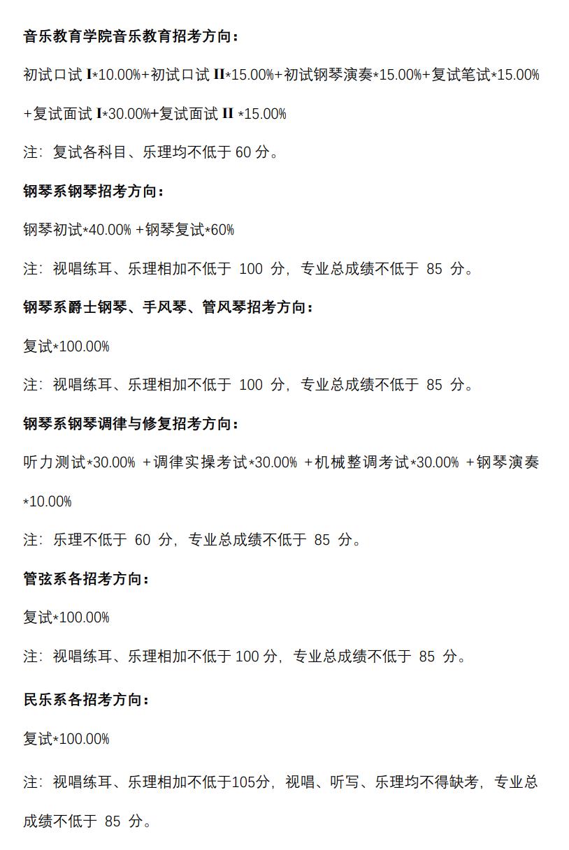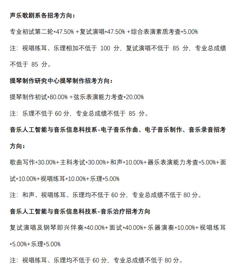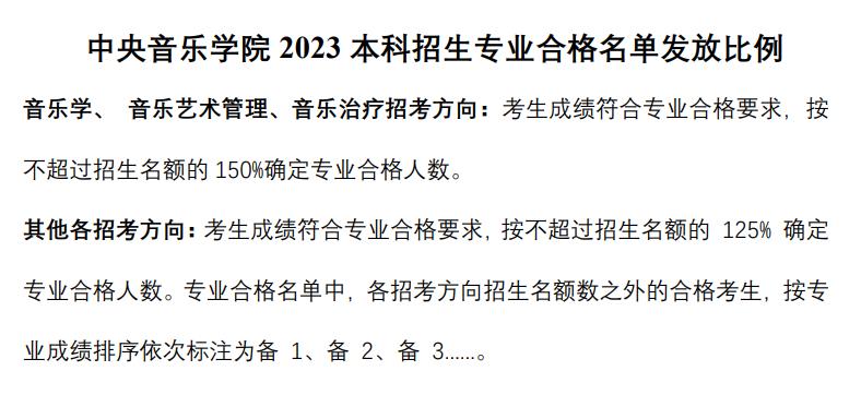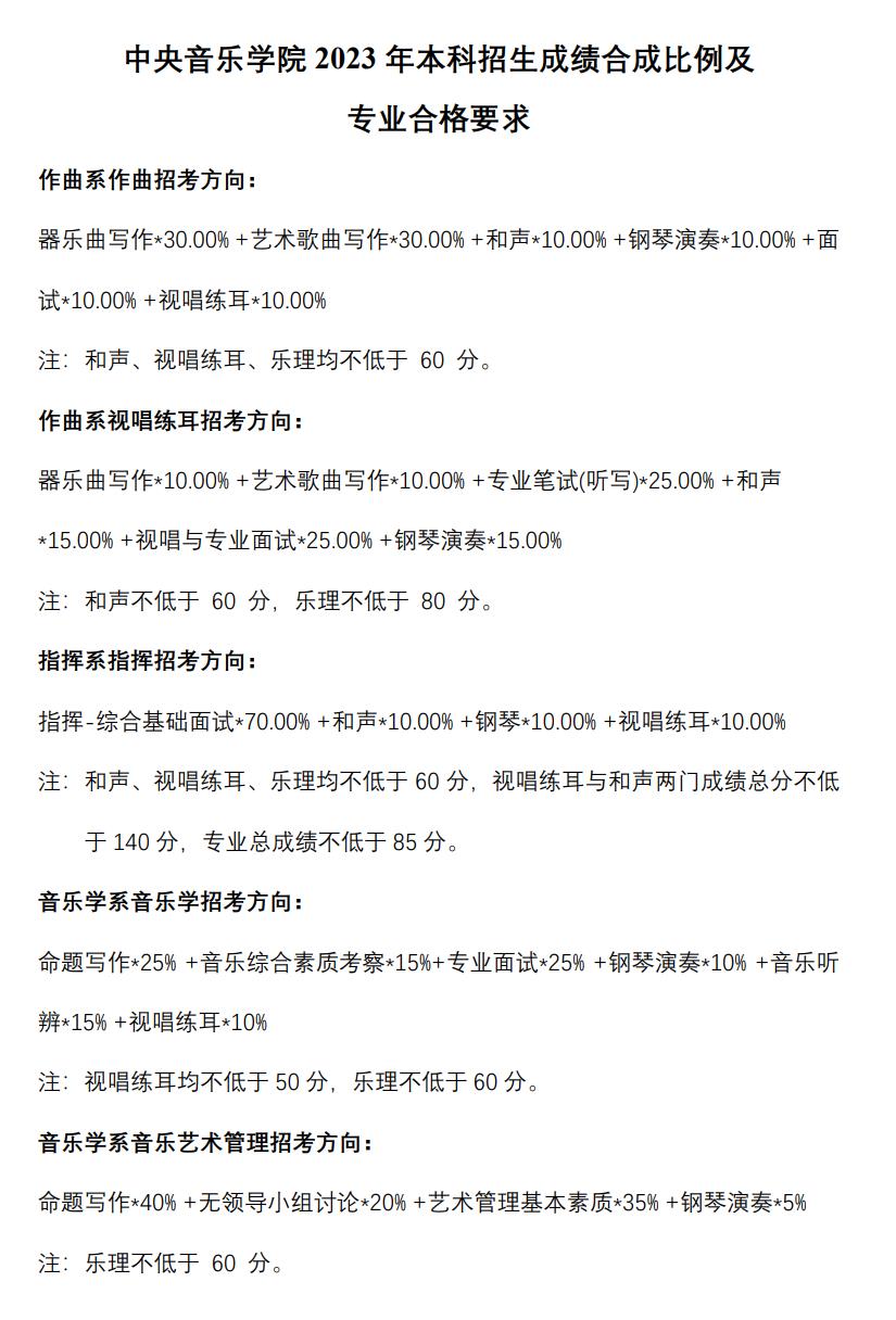中央音乐学院2023年本科招生成绩合成比例及专业合格要求