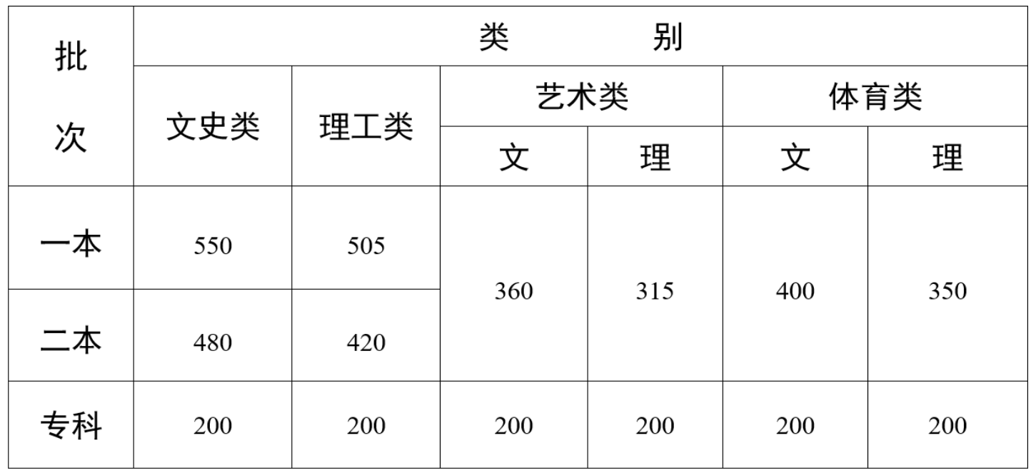 云南省2024年普通高校招生录取最低控制分数线