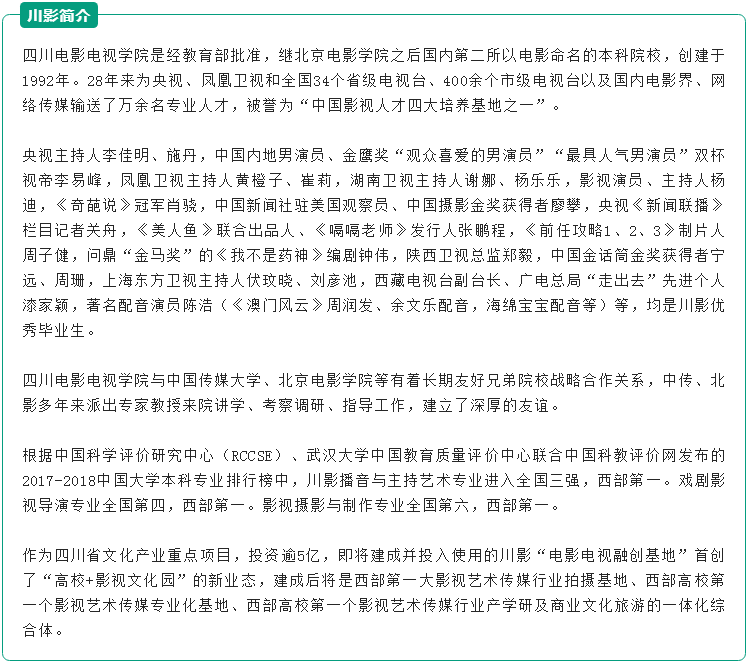 2、本招生简章最终解释权在四川电影电视学院招生就业处。