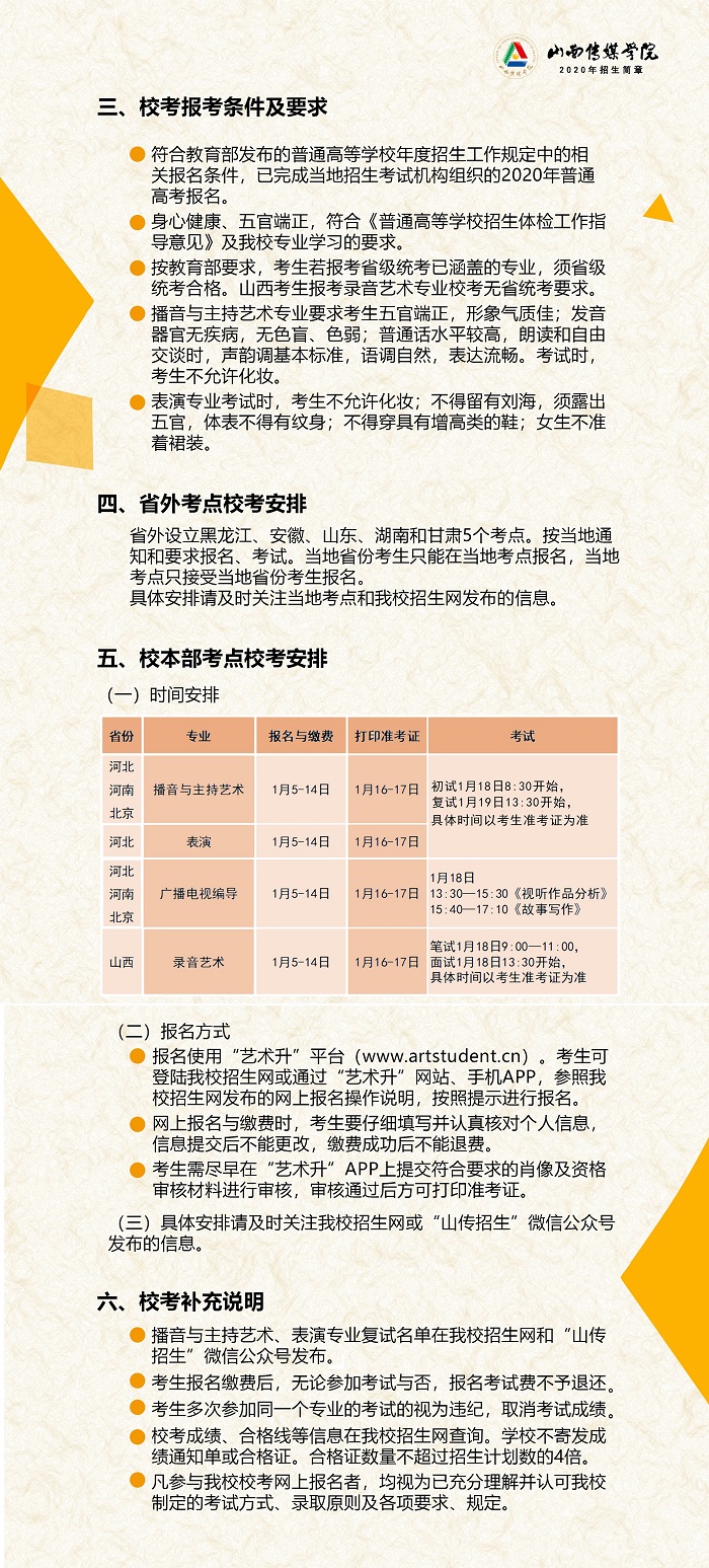 山西传媒学院2020年招生简章