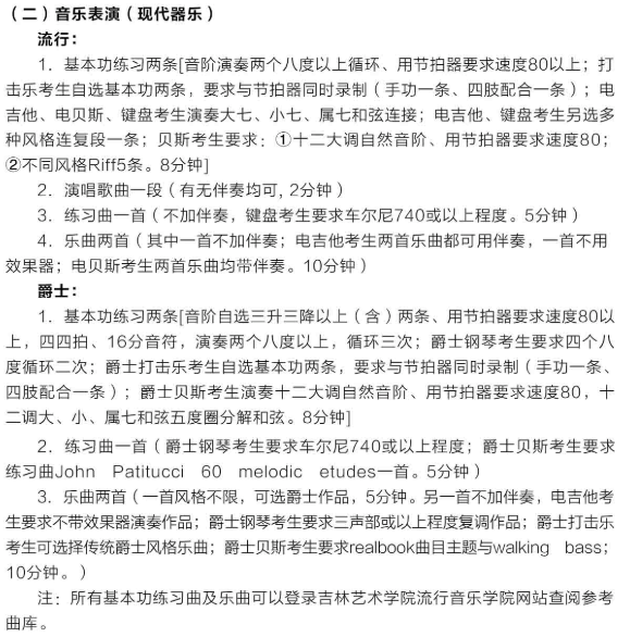 2020吉林艺术学院音乐表演(现代器乐)考试内容