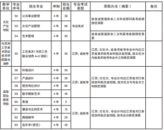 5、高等职业教育学院各专业只面向江苏省招收对口单招考生。另数字媒体 艺术(中外合作办学)、广播电视编导(高校中外学分互认联合培养项目)、影 视摄影与制作(高校中外学分互认联合培养项目)、工艺美术(与苏工艺联合培 养 4+0 项目)专业只招收江苏省艺术类考生,其他在艺术类批次录取的专业均面 向全国招生。