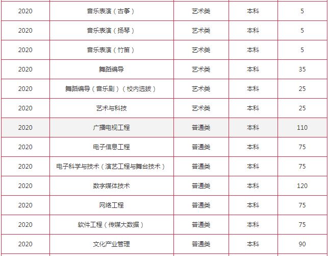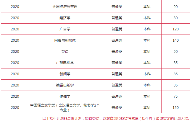 2020浙江传媒学院招生计划