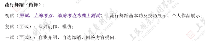 上海视觉艺术学院2020流行舞蹈(街舞)考试内容