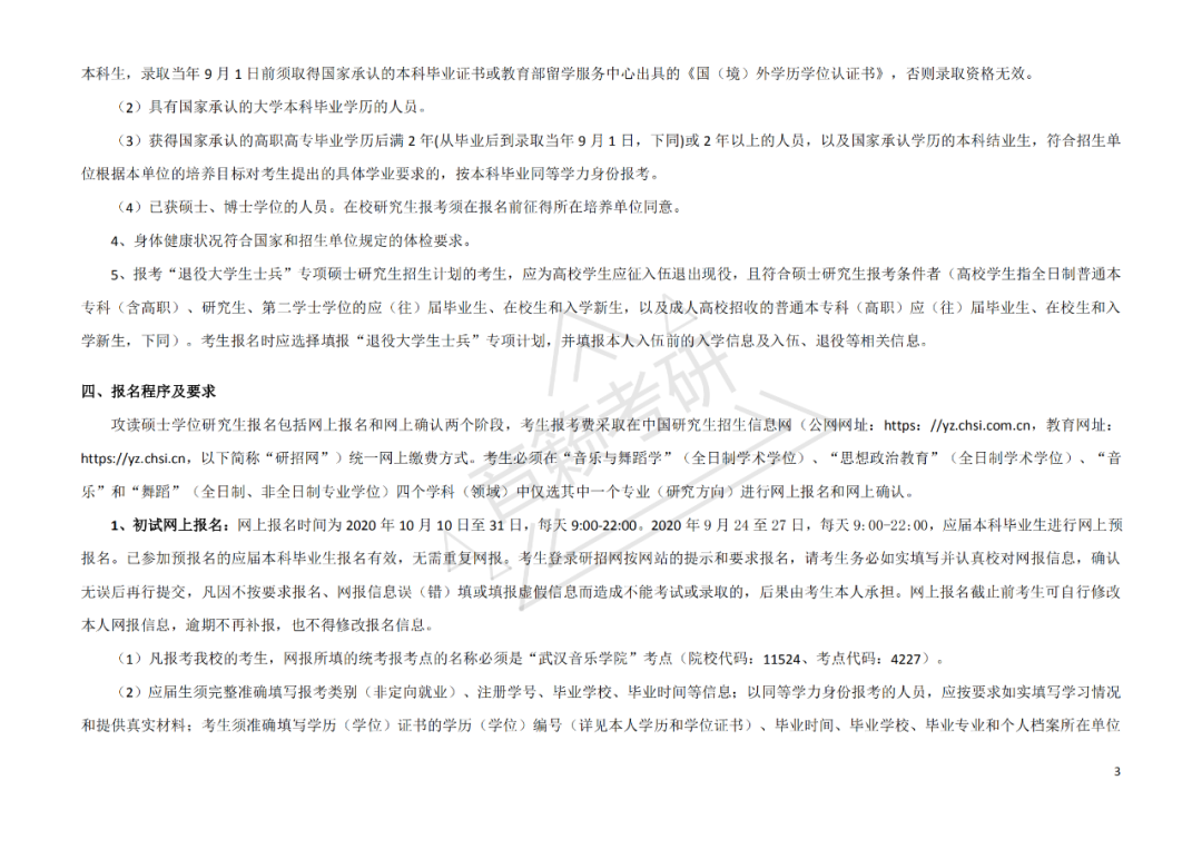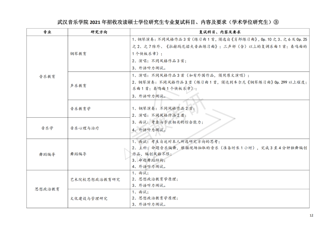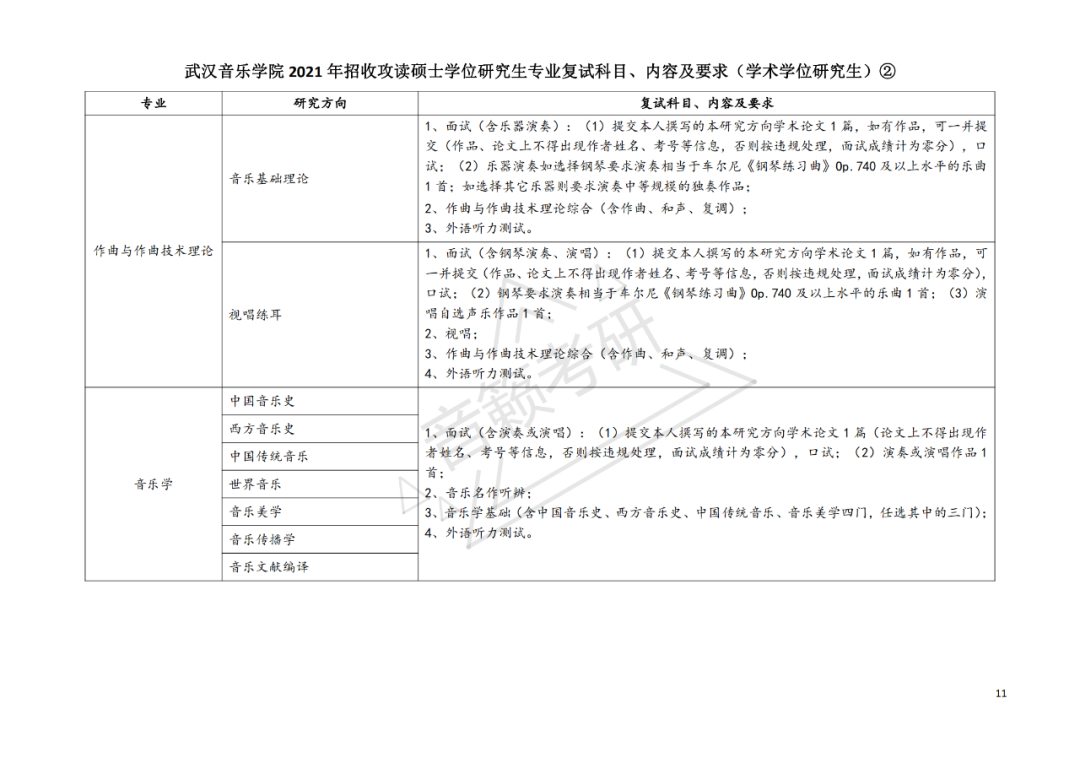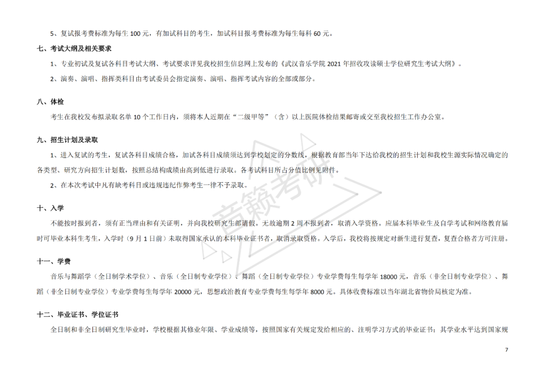 武汉音乐学院 2021 年招收攻读硕士学位研究生招生简章
