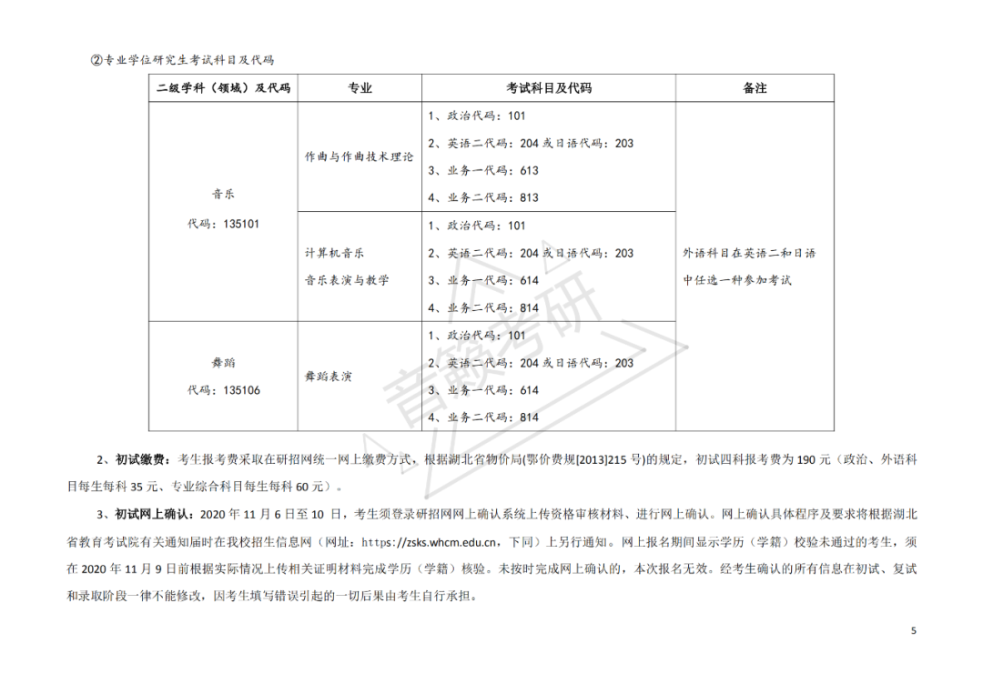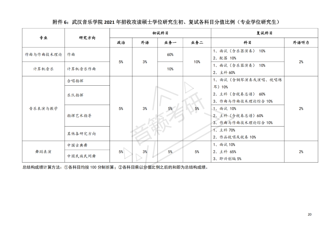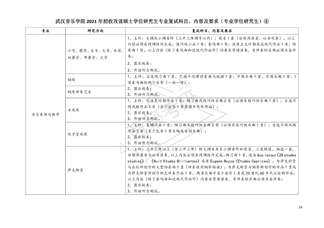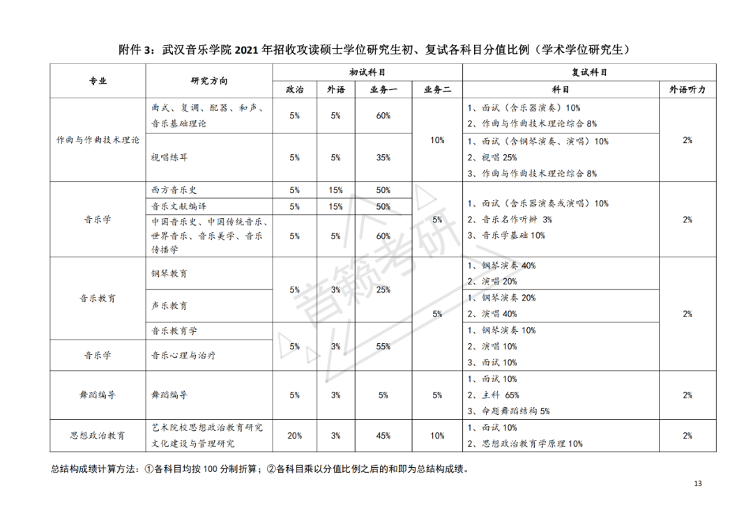 武汉音乐学院 2021 年招收攻读硕士学位研究生招生简章
