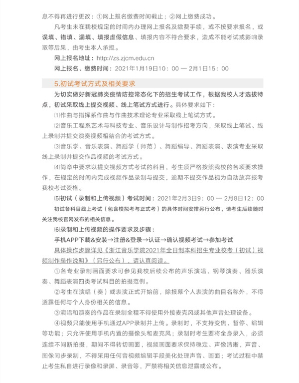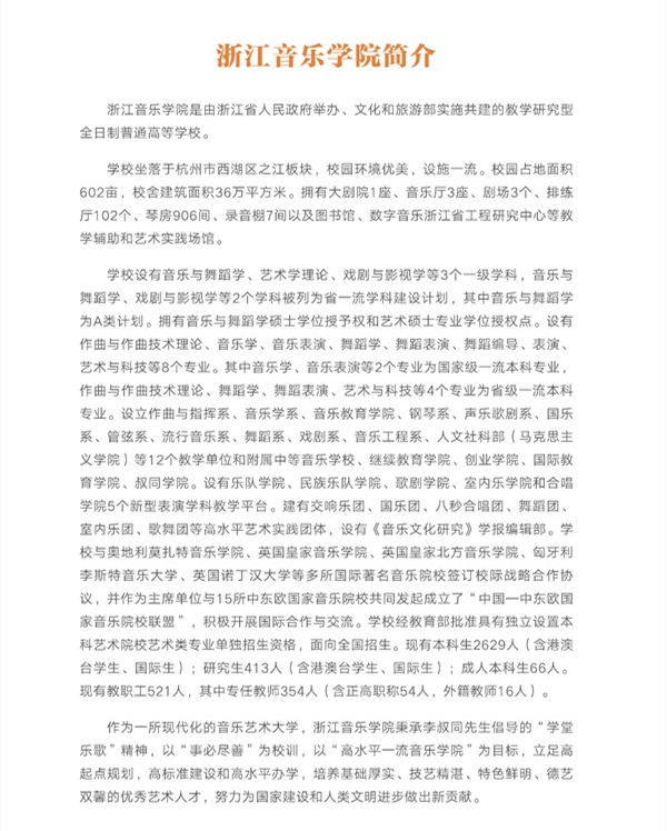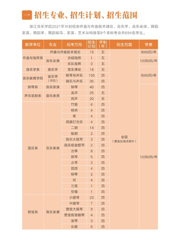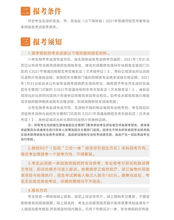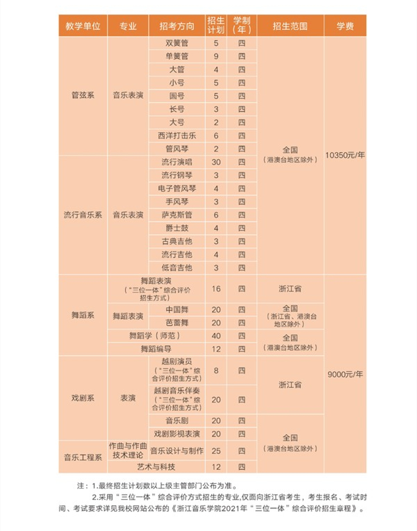 浙江音乐学院2021年招生简章