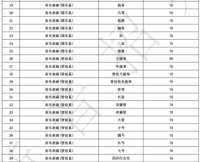 浙江音乐学院2021年本科招生专业校考合格分数线