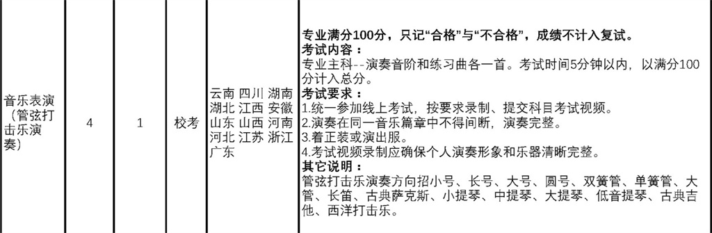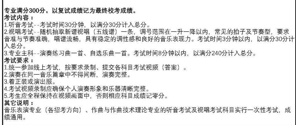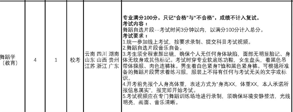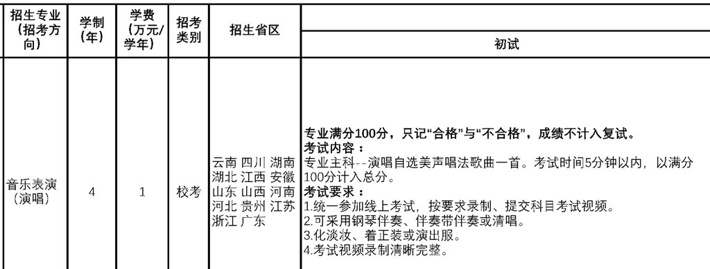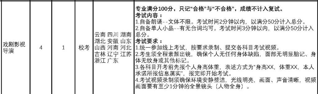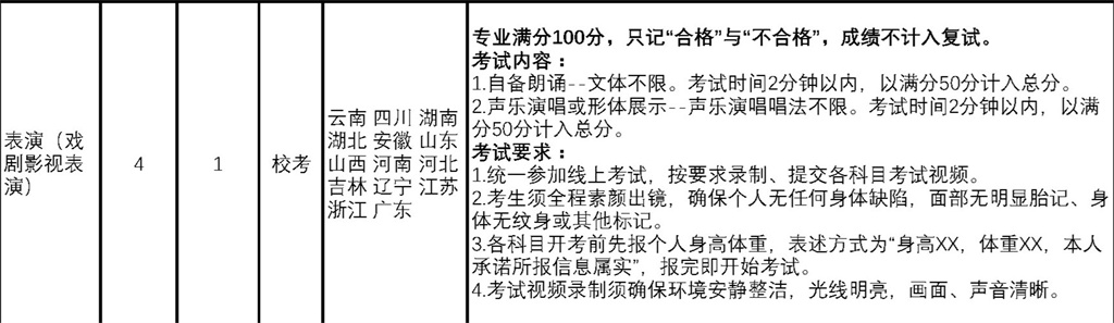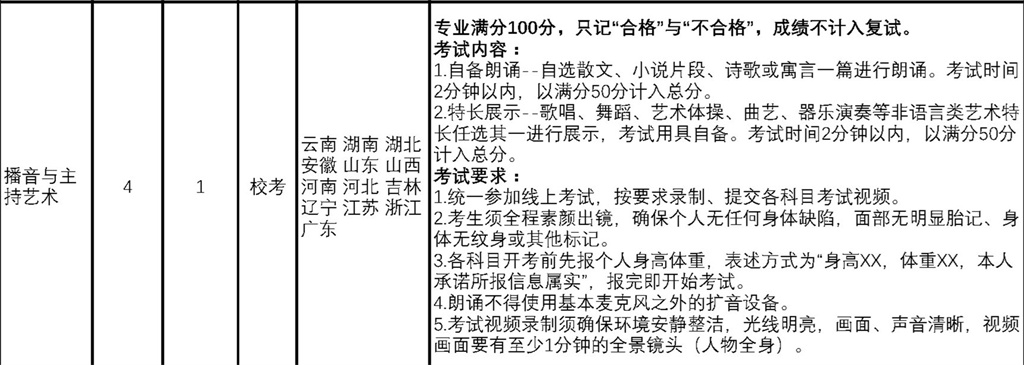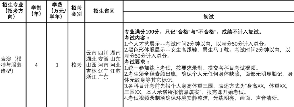 (3)统考:上表24至37号专业,参加省级统考,录取时使用各招生省区相应类别艺术统考成绩作为专业成绩。