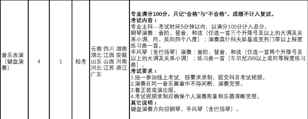 (1)校考:上表1至21号专业,录取时使用校考成绩作为专业成绩;