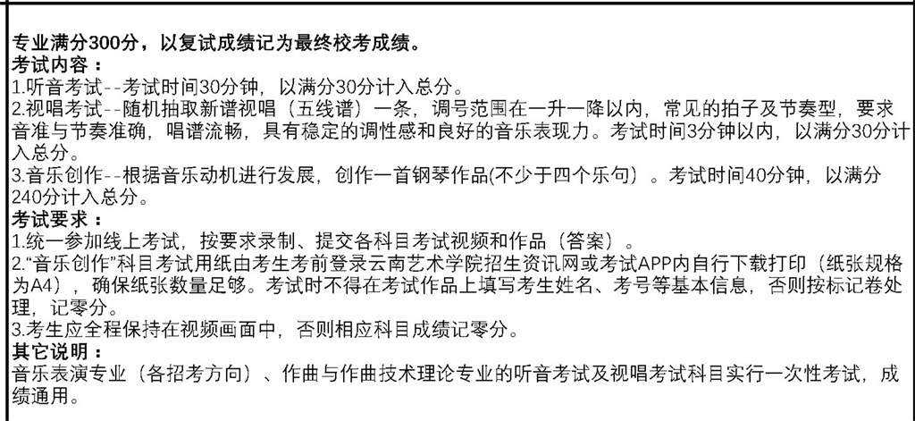 (2)“复试”统一在“云艺招考APP”端线上进行,以复试成绩记为最终校考成绩。