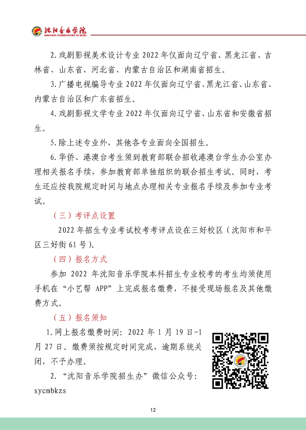 沈阳音乐学院2022年招生简章