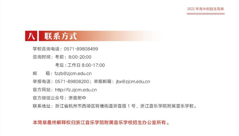 2022年浙江音乐学院附属音乐学校高中部招生简章