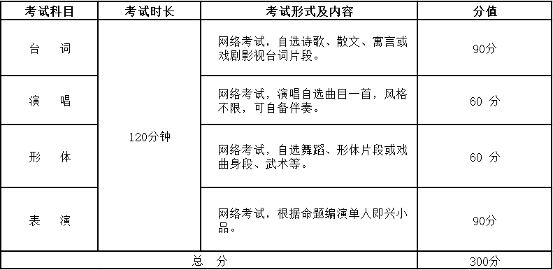 2.表演(服饰表演与推广)专业考试科目及分值(总分300分)
