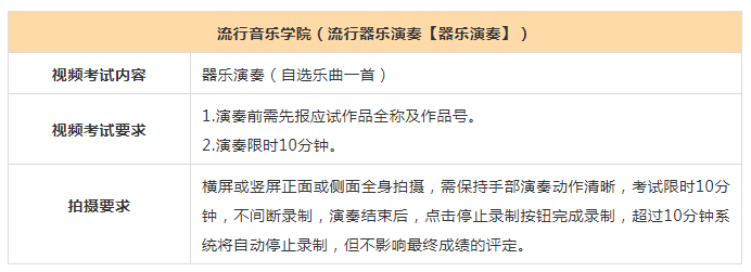 横屏或竖屏侧面上半身拍摄,需保持手部演奏动作清晰,谱架须进入画面,考试限时25分钟,三首曲目不间断录制,演奏结束后,点击停止录制按钮完成录制,2小时内完成考试视频录制并提交。