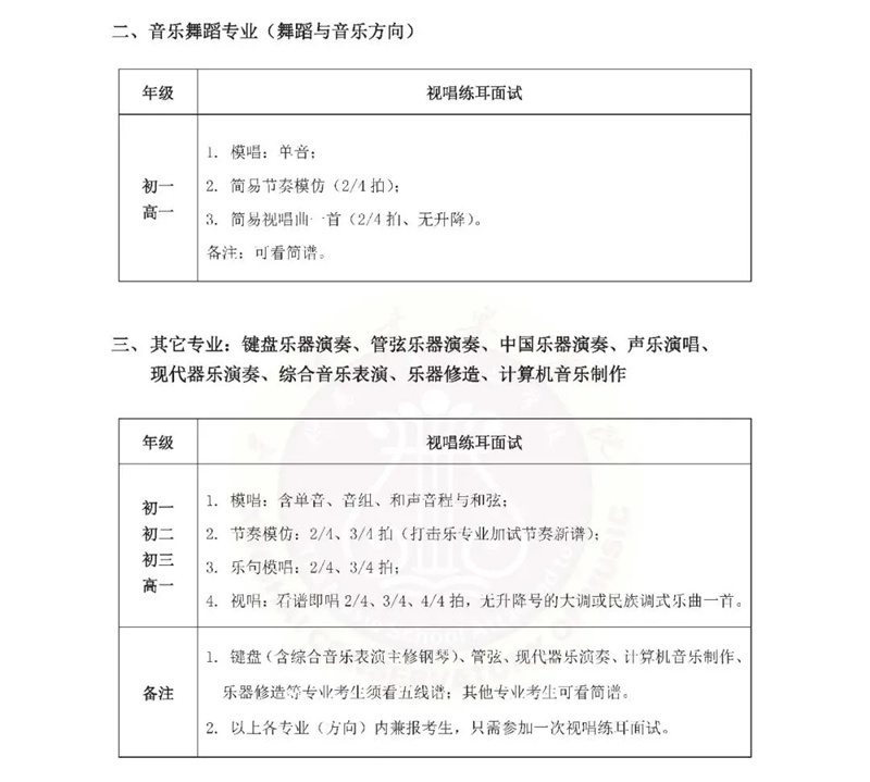 星海音乐学院附中2021年招生简章暨考试大纲
