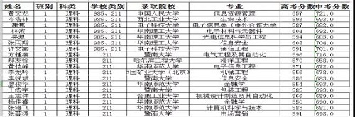 2018届华附红棉班部分学生高考录取情况