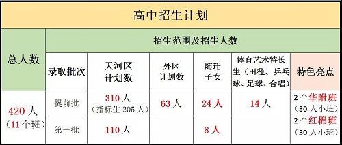 答:我校是广州市示范性高中,面向广州市招生。共招生420人,较去年增加了10个优质学位。高一共开设11个班,实施小班教学。
