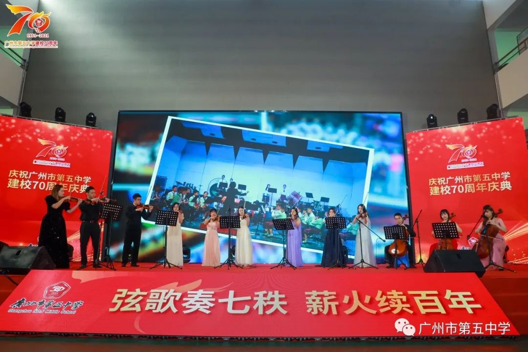 广州五中建校70周年庆典上,五中校友表演器乐合奏。