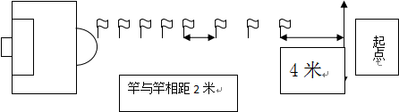 2. 距罚球区线2米处起,沿20米垂线插置标竿8根,竿间距离为2米,第8根标竿距起点4米(见下图)