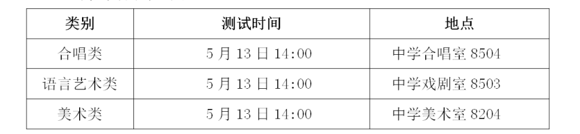 学校将于5月13日下午组织考生进行特长生专业技能测试。具体时间以电话通知为准。