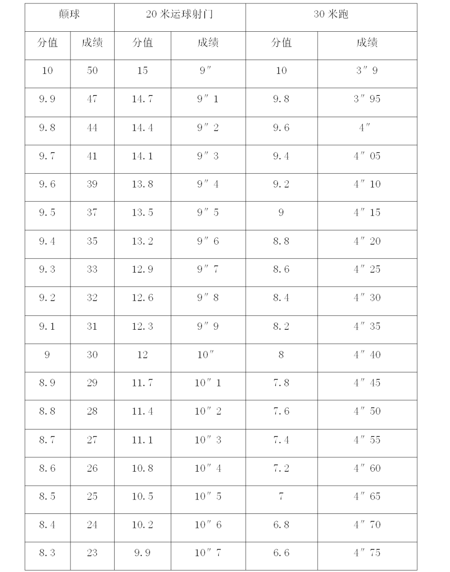 测试者若连续颠球50次,可得满分(10分)。