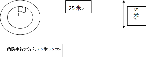 以o为圆心,以2.5米和3.5米为半径,分别画里、外两个圆。圆心处插上一根1.5米高并系有彩色小旗的标志竿,作为传准的目标。(见下图)
