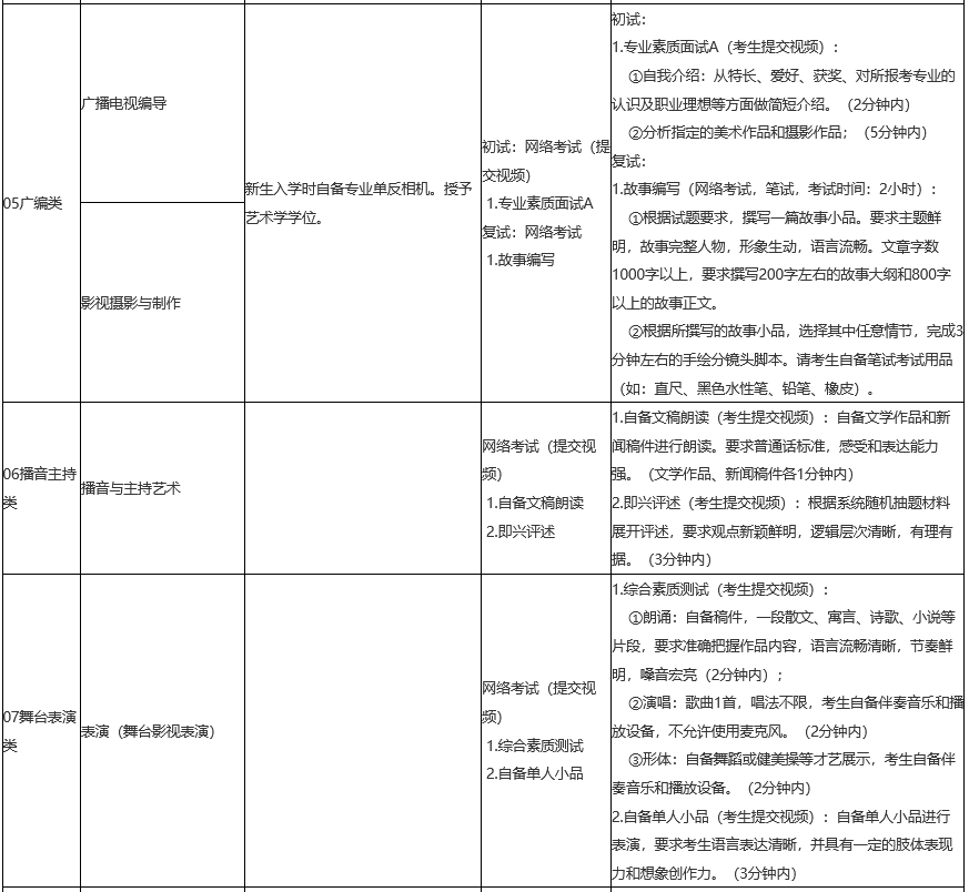 1.自备文稿朗读(考生提交视频):自备文学作品和新闻稿件进行朗读。要求普通话标准,感受和表达能力强。(文学作品、新闻稿件各1分钟内)
