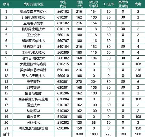 目前,学院设有计算机应用技术、物联网应用技术、应用电子技术、电气自动化技术、机械制造与自动化、工业机器人技术、新能源汽车技术、工业设计、建筑室内设计、园艺技术、园林技术、动物医学、畜牧兽医、电子商务、财务管理、投资与理财、大数据技术与应用、数字媒体艺术设计、无人机应用技术、商务数据分析与应用、幼儿发展与健康管理等21个专业。建设智能制造、电子集成、数控装调、自动控制、逆向技术及快速制造、工业机器人生产训练、电子商务、冷链物流、现代园艺、动物医护等多个能够满足现代职业教育需求的现代化生产实训中心,理工科特色鲜明。