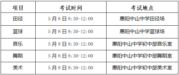 4.2022年惠阳区普通高中特长生考试内容
