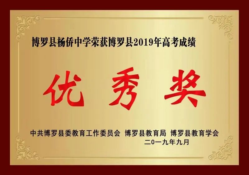 博罗县杨侨中学,原名广东省杨村华侨柑桔场中学,创建于1969年,是广东省一级学校、广东省普通高中教学水平优秀学校。校园面积179600平方米,建筑面积51110平方米,现有在编教职工234人,其中高级教师48人,中级教师86人,硕士研究生9人,在职研究生29人,学历达标100%。学校在53年办学历程中,为高等院校输送了大批品学兼优的学生,其中,聂赞相同学考上英国剑桥大学,曾鹏程、温凤华同学考上清华大学,邓伟忠同学考上北京大学,陈赞业、邓玮、陈美冰等同学考上中国人民大学,汤济民同学考上中央美术学院,陈伟忠、朱启珍、朱碧霞、陈光成、廖晨等300多名学生考上浙江大学、中山大学等名校。