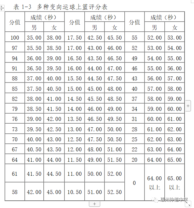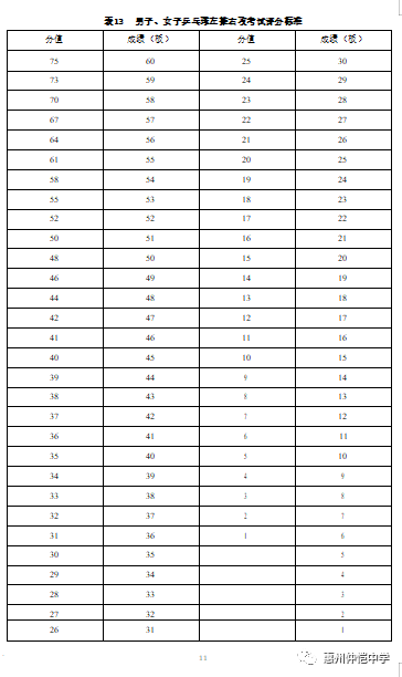 标准详见“表 13 男子、女子乒乓球左推右攻考试评分标准”。