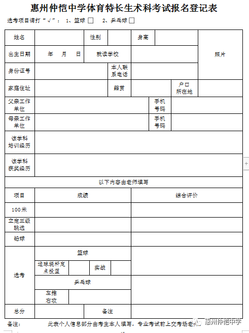 惠州仲恺中学2022年特长生招生考试网上报名系统(按要求准确填写相关信息,每位考生只能报考一次,请谨慎填写报考信息,提交成功后,不得再做更改。)