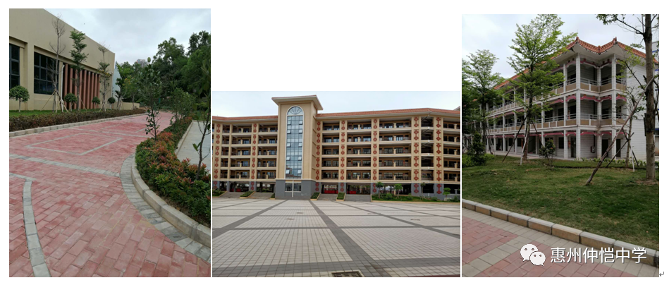 惠州仲恺中学(高中部)地处陈江街道,莞惠轻轨仲恺站旁边,交通便利。校园布局合理典雅,树木葱茏、鸟语花香,有公寓式学生宿舍、省A级卫生学生饭堂。学校音、体、美教学设施齐全,有标准足球场、田径运动场、塑胶跑道、6个标准篮球场、4个羽毛球场、1个排球场和一座室内体育馆;独立的艺术楼和专业画室,有学生专用琴房20间。