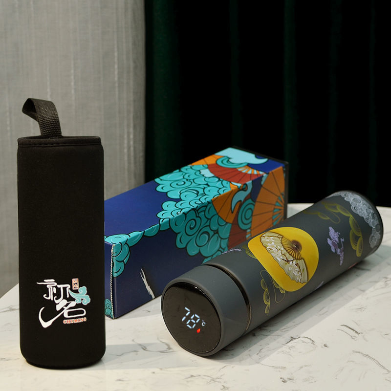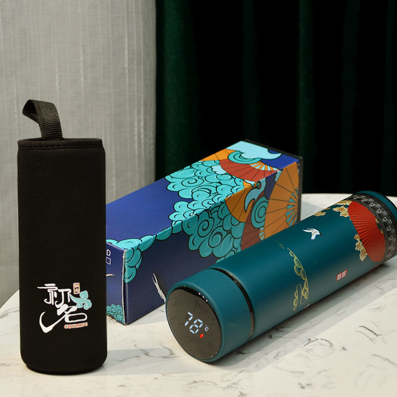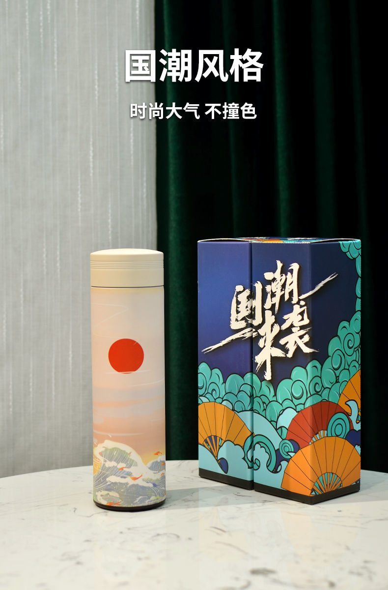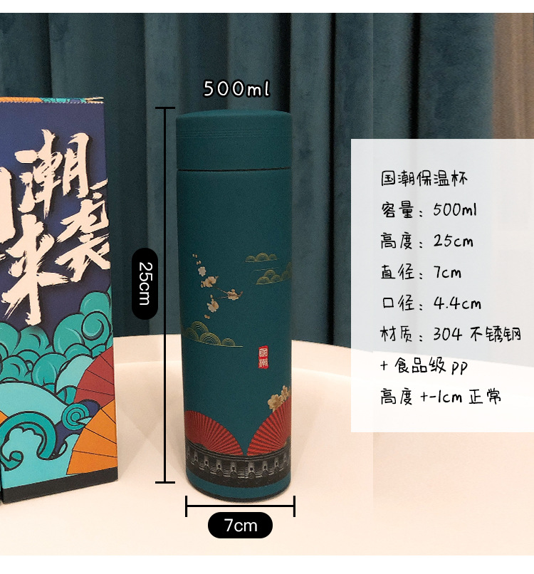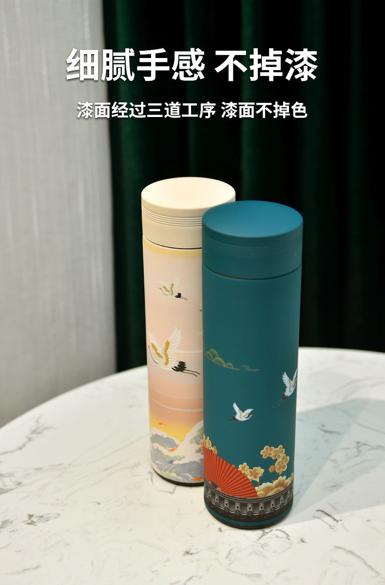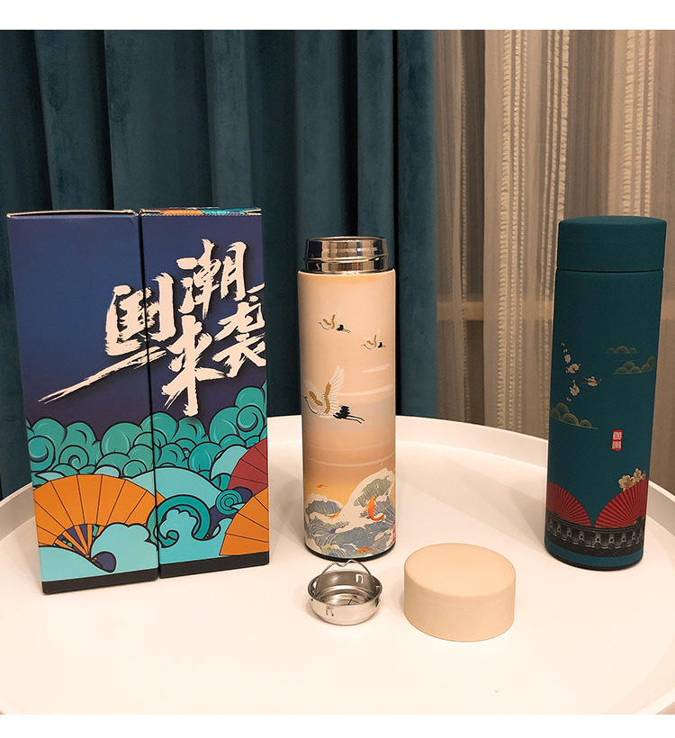 中国风国潮直身商务保温杯高档过滤带茶漏不锈钢杯子密封防漏水杯