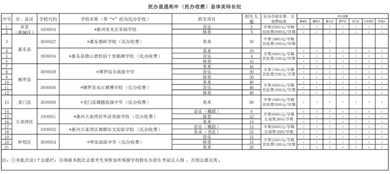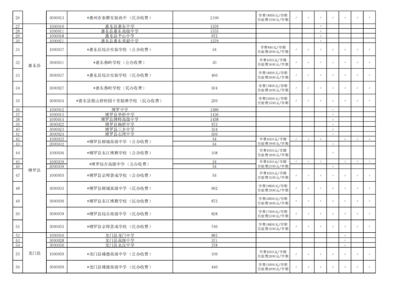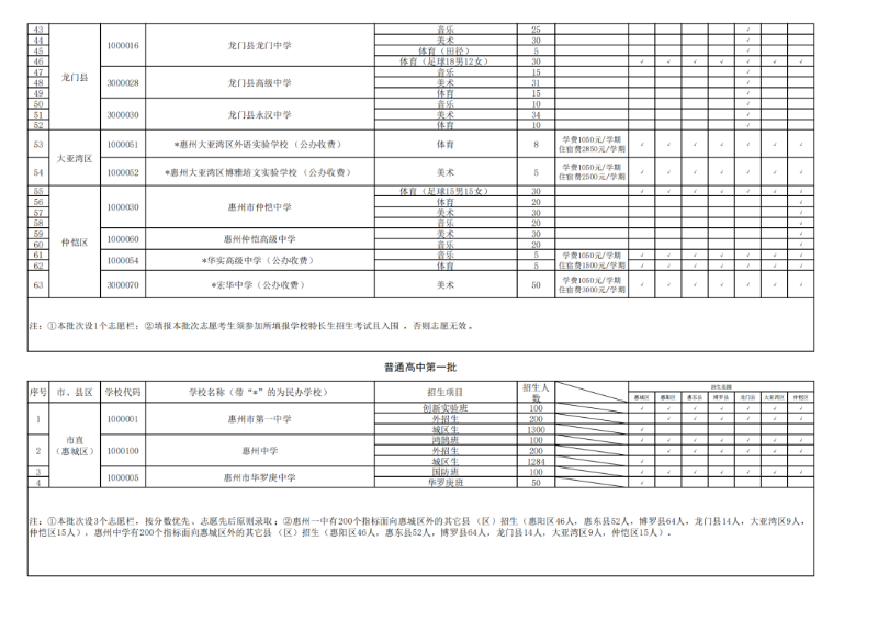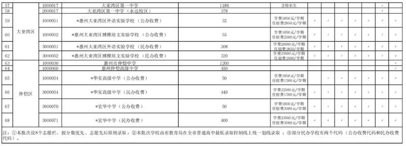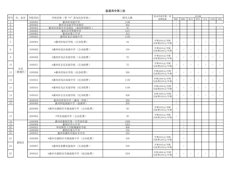 惠州市2023年普通高中各批次学校及招生范围