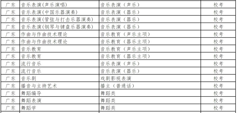 南京艺术学院广东省校考专业