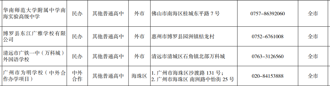 可以招广州中考生的外市高中学校有哪些