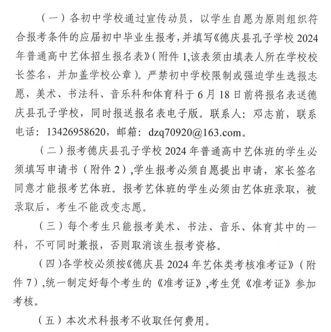 德庆县孔子学校2024年普通高中招收艺体特长生工作方案