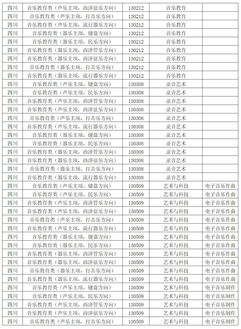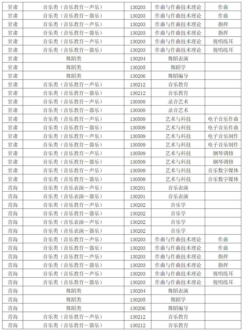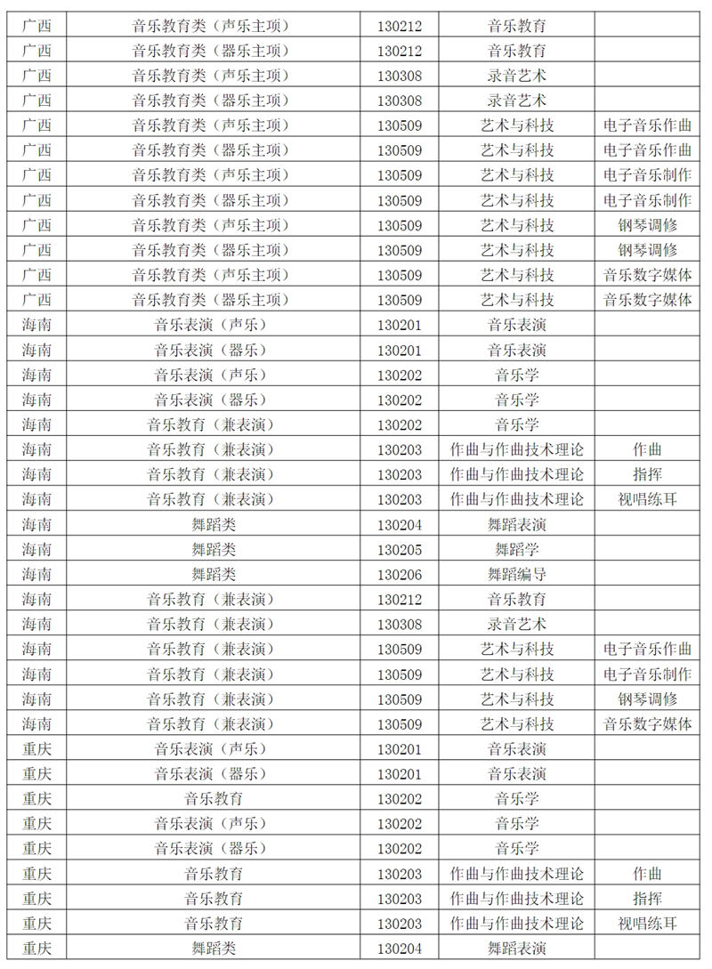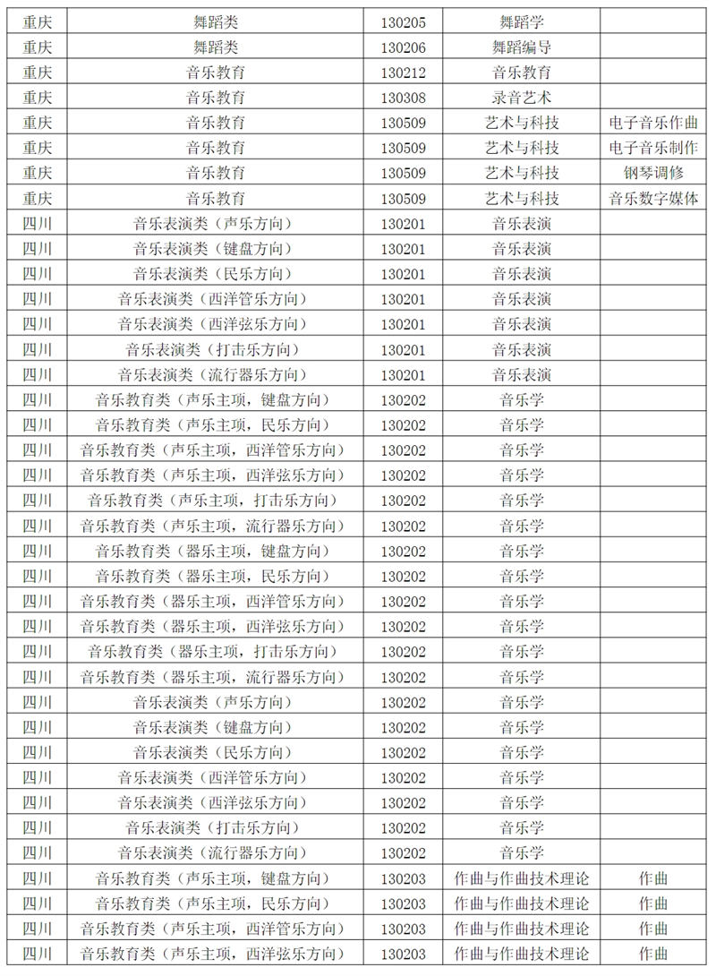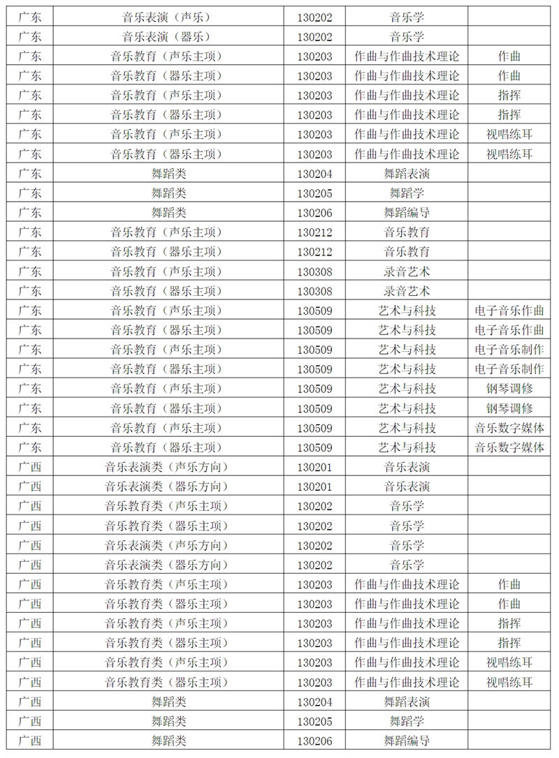 西安音乐学院2024年招生专业和各省统考子科类对照表根据教育部相关文件规定,报考西安音乐学院的考生须参加各省音乐类、舞蹈类统考,且成绩达到本科合格。请考生认真阅读对照表中西安音乐学院各专业与各省统考子科类的对应。若因参加省统考子科类不对应或统考成绩不合格,造成校考合格成绩无法上报给各省级招办备案或无法录取到相关专业的责任,由考生自行承担。
