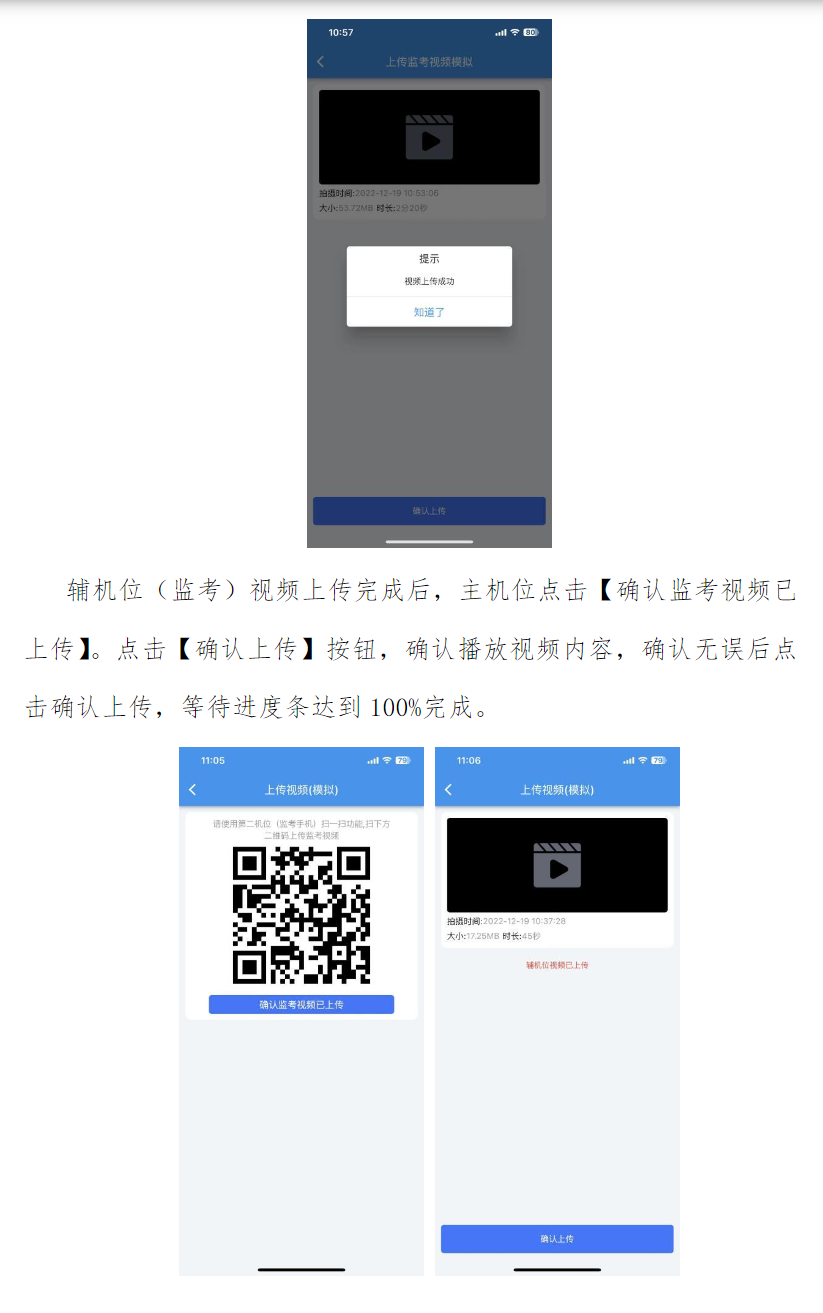 3.录制时要将考生全身录入,必须连续不间断拍摄,其间不得转切画面,录像画面要求保持稳定、声像清晰,声音、图像同步录制不得采用任何视频编辑手段、美化处理画面,不得采用任何音频编辑手段美化编辑音频。否则视为作弊,该科目考试成绩以零分计。特别提示:请考生务必在2024年1月28日18:00前完成视频录制并确保上传进度条100%完成。超出时间期限未完成考试视频录制及成功上传的,视为放弃远程网络视频考试。