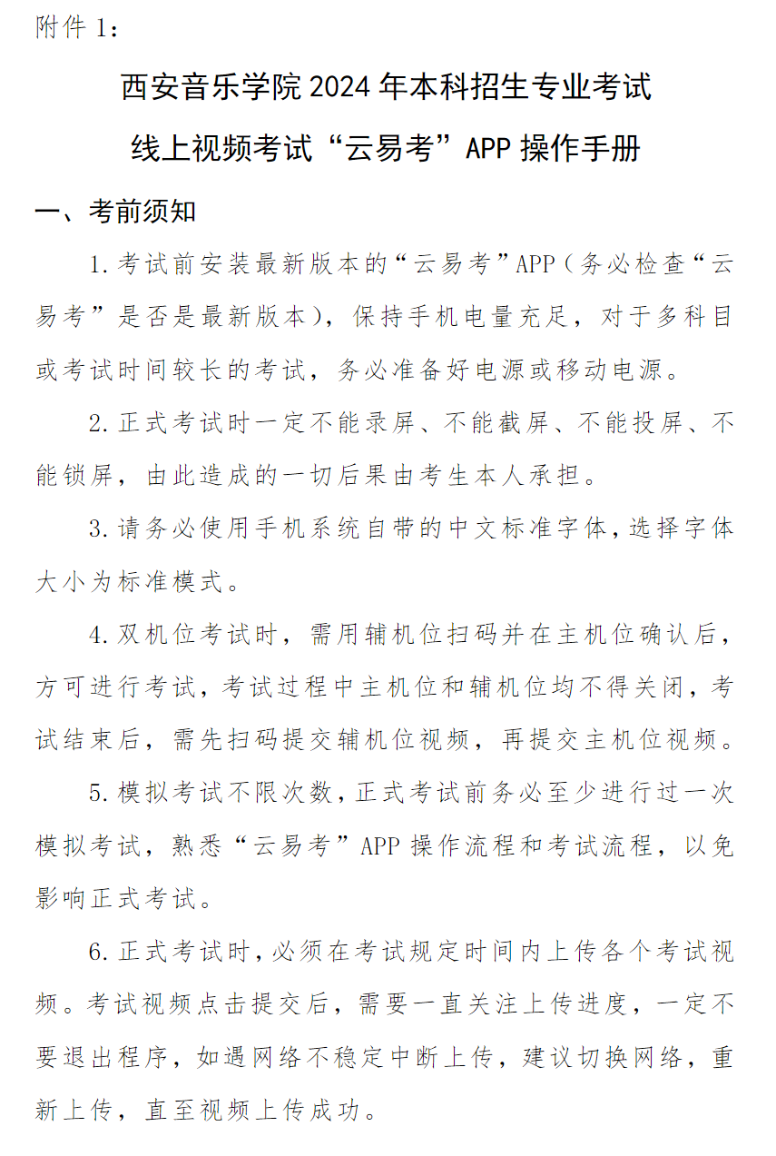 西安音乐学院2024年本科招生专业考试第一阶段远程网络视频考试办法